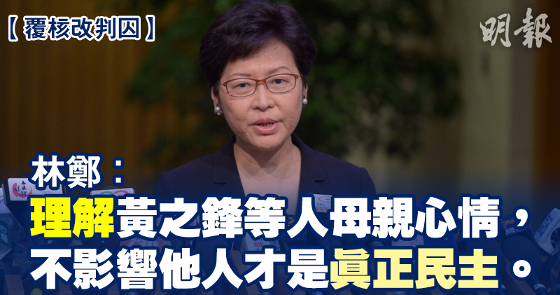 【覆核改判囚】林鄭:理解黃之鋒等人母親心情 不影響他人才是真正民主