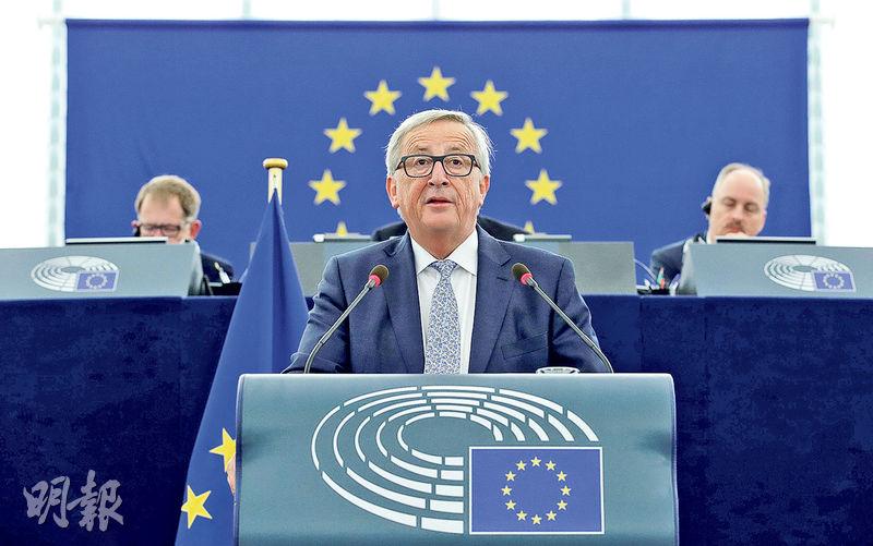 歐盟委員會主席容克昨日在法國斯特拉斯堡向歐洲議會發表「國情咨文」,包括提出建立針對外資收購歐洲戰略企業的審查機制。(路透社)