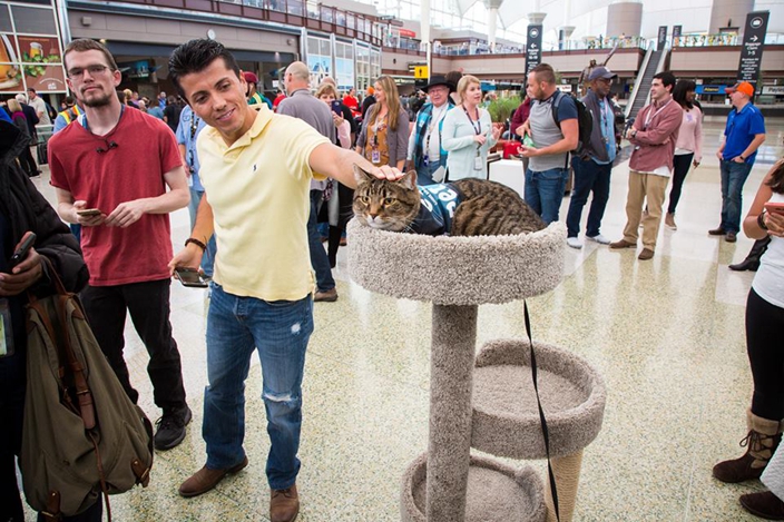 發表文章發起投票機場減壓療癒貓任人摸美國科羅拉多州丹佛機場,近日岀現一位特別的新成員,來自「喵星球」的Xeli在機場擔任「治療貓」一職,每日的任務就是穿著「pet me」的制服在機場漫步,希望能幫助旅客在旅途中舒緩焦慮和壓力。丹佛國際機場原本就設有治療犬團隊,隨著喜愛「喵星人」的人數增加,機場就聘用了五歲的Xeli擔任「治療貓」一職。早前Xeli首次穿著制服登場,雖然Xeli才剛上班,但馬上就適應自己的職責,睜圓眼、搖尾賣萌,甫一開工就獲得超高人氣。丹佛國際機場表示,Xeli將會在本月13日正式執行療癒任務。許多在機場候機的旅客表示,旅行疲憊時能在機場與毛孩互動,感到超療癒。202017/10/11, 5:30:19 下午本貼文共有 0 個回覆此貼文已鎖,將不接受回覆發表文章發起投票