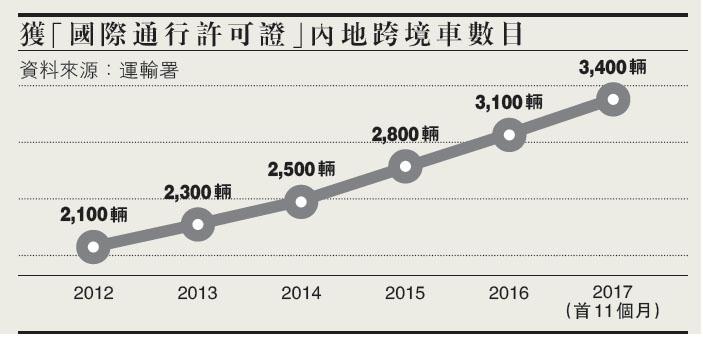 本報向運輸署查詢過去6年批准發出許可證在港行駛的廣東省非商用私家車數目,發現每年均錄得平穩增幅,2012年有2100輛內地跨境車獲批許可證在本港道路行駛,按年遞增至去年的3100輛,今年首11個月已有3400輛獲批。