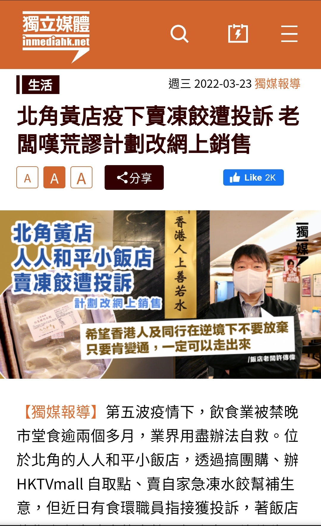發表文章發起投票回覆獨媒 北角黃店疫下賣凍餃遭投訴 老闆嘆荒謬計劃改網上銷售https://www.inmediahk.net/node/生活/北角黃店疫下賣凍餃遭投訴-老闆嘆荒謬計劃改網上銷售獨媒北角黃店疫下賣凍餃遭投訴 老闆嘆荒謬計劃改網上銷售002022/03/24, 3:11:25 下午引用快速引用本貼文共有 0 個回覆發表文章發起投票回覆
