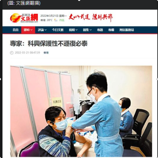 然而《文匯報》情況有點不同,我看完整篇報道,連幅圖都放大睇埋,也看不出為什麼「科興保護性不遜復必泰」。