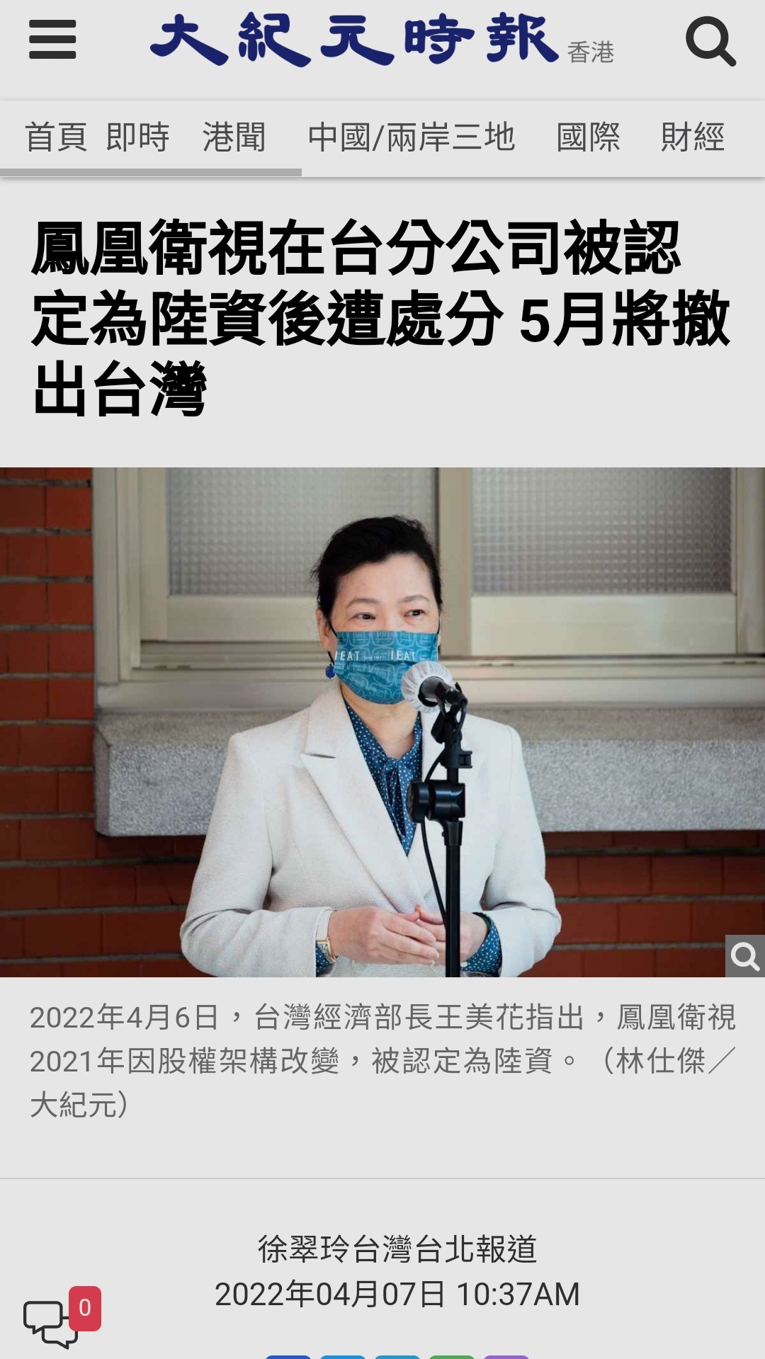 發表文章發起投票回覆鳳凰衛視在台分公司被認定為陸資後遭處分 5月將撤出台灣 大紀元時報香港https://hk.epochtimes.com/news/2022-04-07/50561720鳳凰衛視在台分公司被認定為陸資後遭處分 5月將撤出台灣大紀元時報香港002022/04/07, 6:28:04 晚上引用快速引用本貼文共有 0 個回覆發表文章發起投票回覆